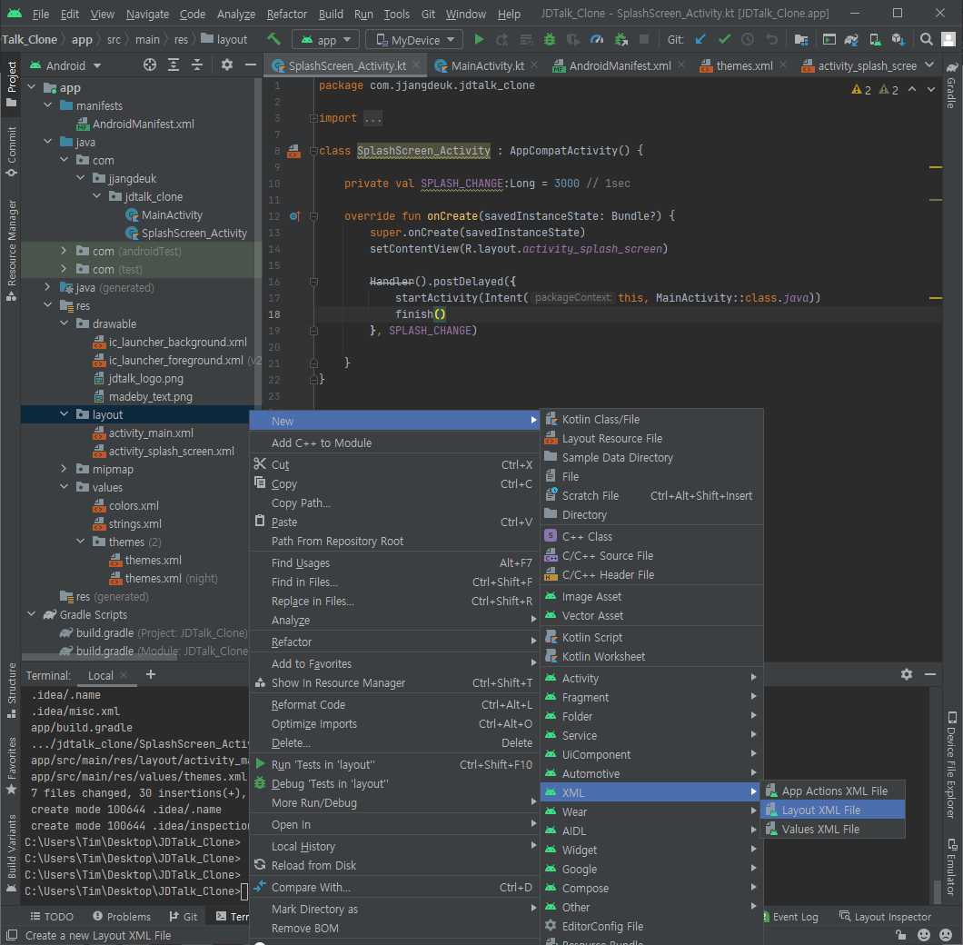 [Ch.1] JDTALK 어플 시작화면 SPLASH 효과주기 를 구성하면서 Splash 효과 이후에 메인 화면으로 마땅히 둘 것이 없어서