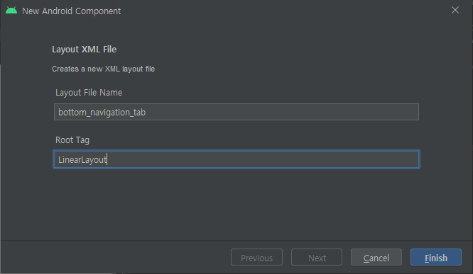 Layout File Name : bottom_navigation_tab / Root Tag : LinearLayout