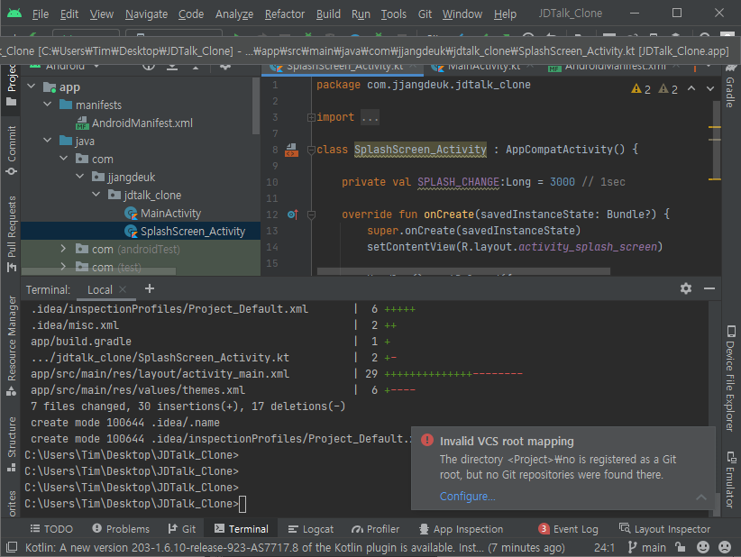 | [Ch.1] JDTALK 어플 시작 화면 구성-Splash Screen (카K오톡 클론코딩) - Android studio(with.Kotlin) (0) | 2021.12.22 |