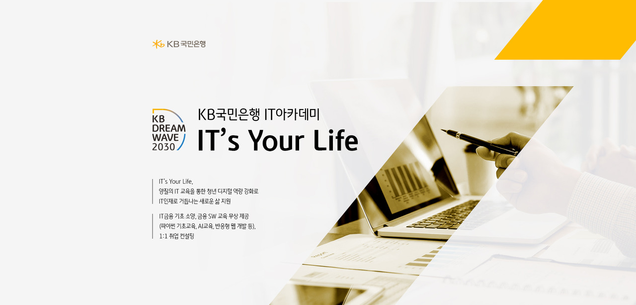 그래서 우연히 알게 된 KB 국민은행 IT 아카데미인 IT's Your Life를 신청하게 되었다.