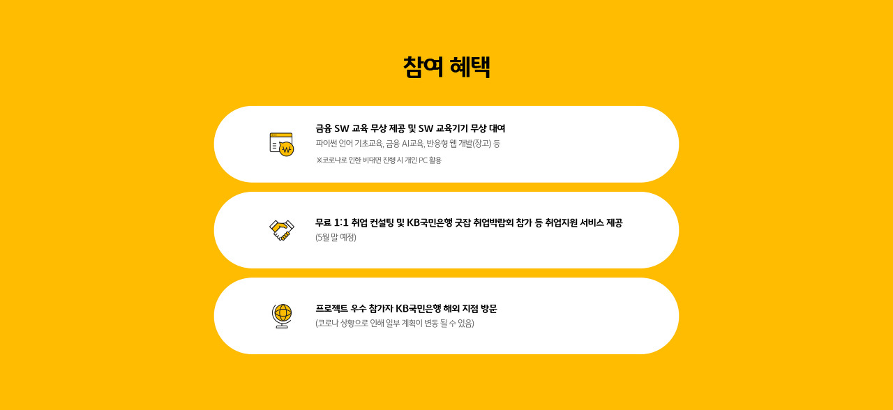 우수 팀 프로젝트는 KB국민은행 해외 영업점 연수라는 혜택까지 주어진다고 하니 너무 좋았다.