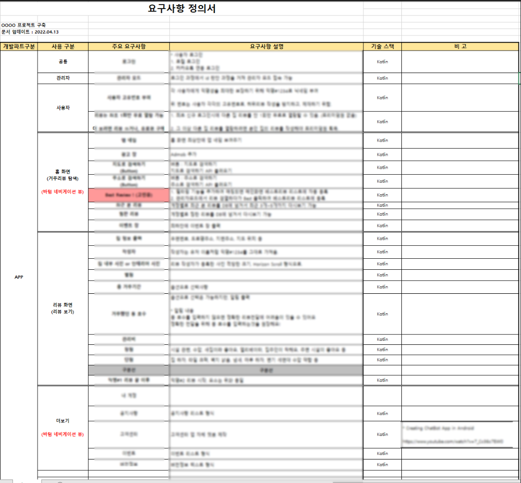 요구사항 정의 단계에서는 어떤 사용자가 사용하는지 또는 어떤 화면에서 사용 될 기능인지 명시 해 주었고