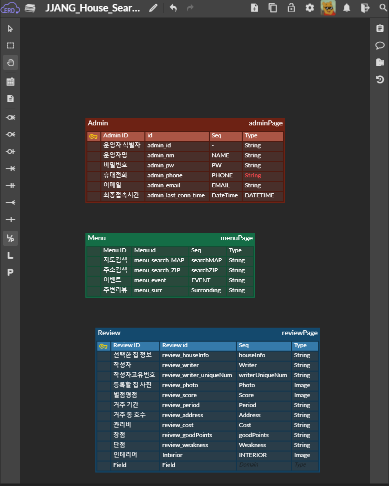물론 위 DB는 아직 완성본이 아니고, 해당 테이블에서 반드시 필요한 데이터는 무엇이 있는지만 먼저 나열식으로 작성한지라, 많이 더러운 상태다.. ㅎㅎ;