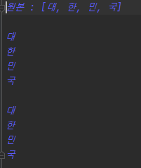 println("원본 : " + stsplit) # 원본 : 대한민국