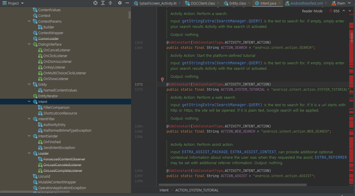 - action.MAIN (ACTION_MAIN) 작업은 이것이 주요 진입 지점임과 동시에 어떠한 Intent Data도 기대하지 않는다는 것을 나타냄
