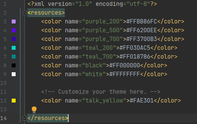 (yellow 는 여기에서 예약어가 따로 있는건지 모르겠지만, yellow로 하면 인식을 안하더라.. 그래서 talk_yellow 로 해 주었다.)