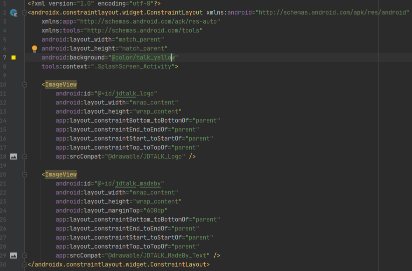 두개의 ImageView (JDTALK, Made by ....)를 이와 같이 정리 해 주었다.