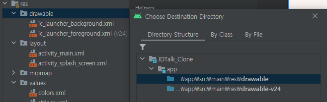 단, 붙여넣기 하는 폴더는 drawable-v24가 아닌, drawable 폴더여야 한다.