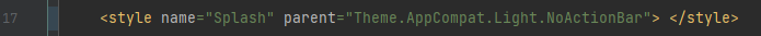 Splash 라는 이름을 가진 새로운 style 태그를 생성 한 것으로, NoActionBar를 요구하는 코드이다.